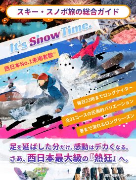 【△:一部滑走可能】 ダウンヒルコース&乙女コース下部 滑走可能! 最長2,800m のロングコース! 早朝6時~夜23時までロング営業!! パークはエリア最大数の5アイテム!!