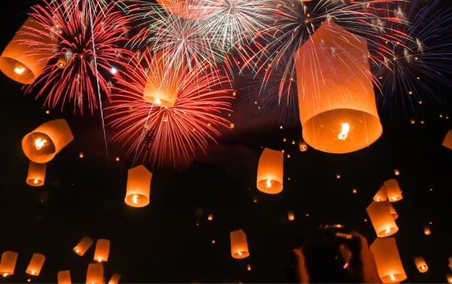夜空を彩るランタンの灯り。