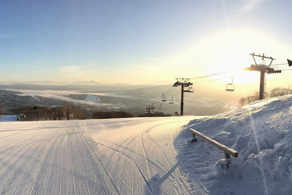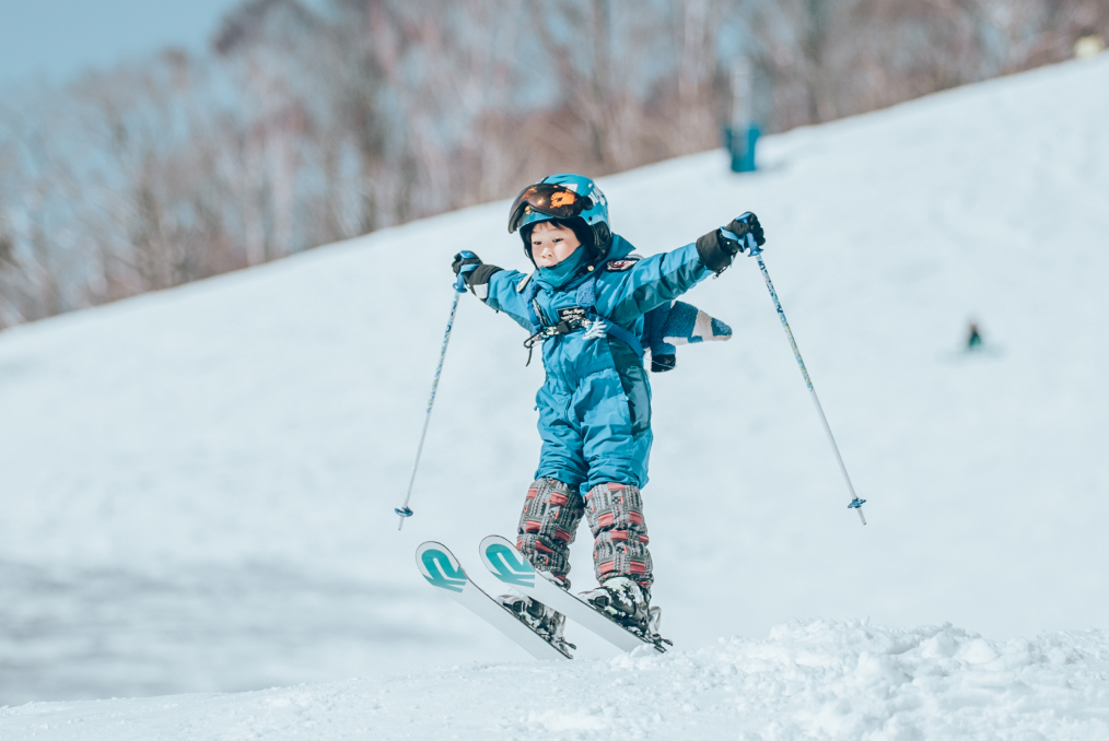 頂上の標高は1,550m。この高さが、人工雪では味わえないフワフワの雪質を生みます。転んでも痛くなく、ウェアも濡れにくいのが自慢です。