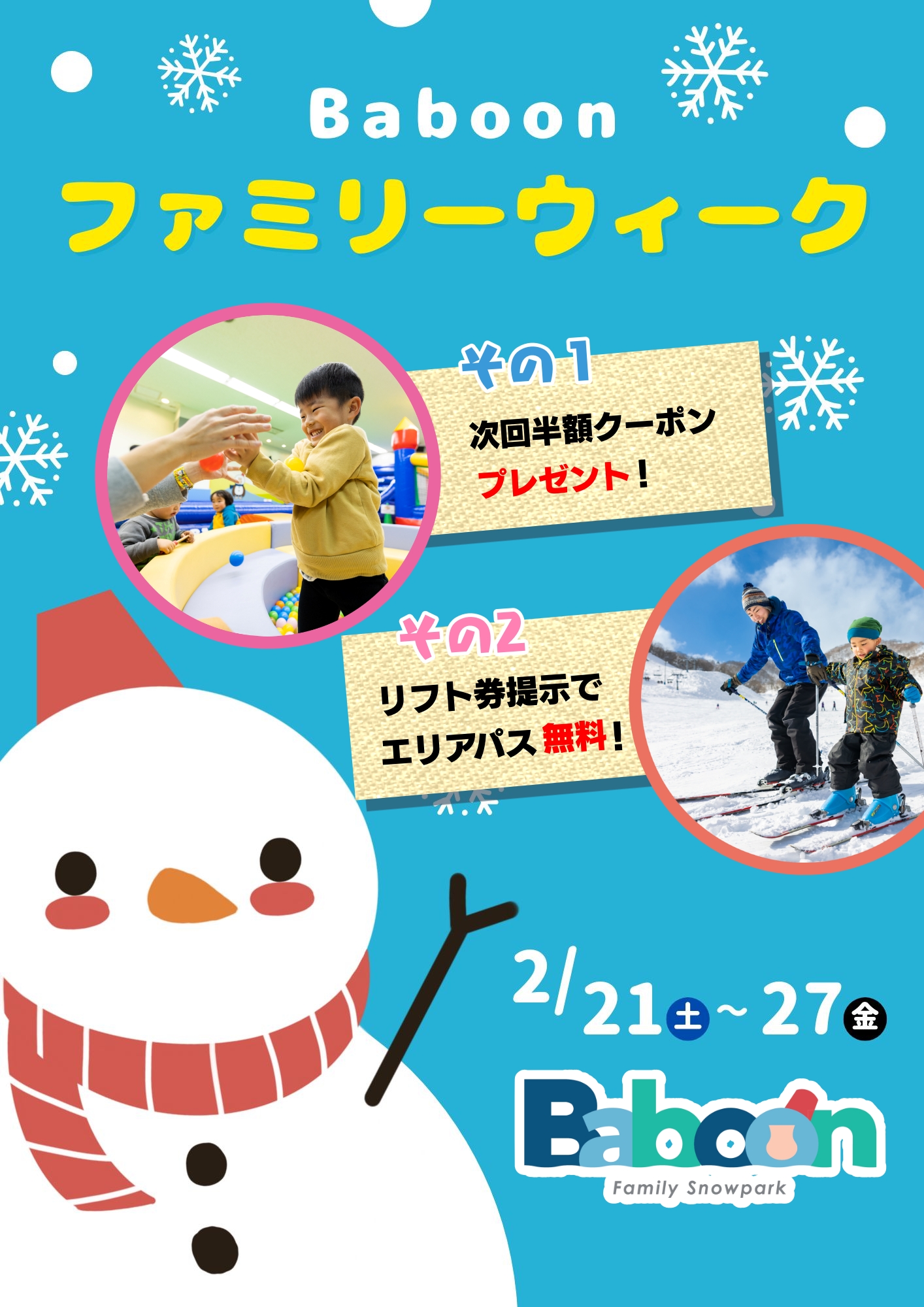 ご家族の冬遊びを応援する、Baboon ファミリーウィークを開催します!