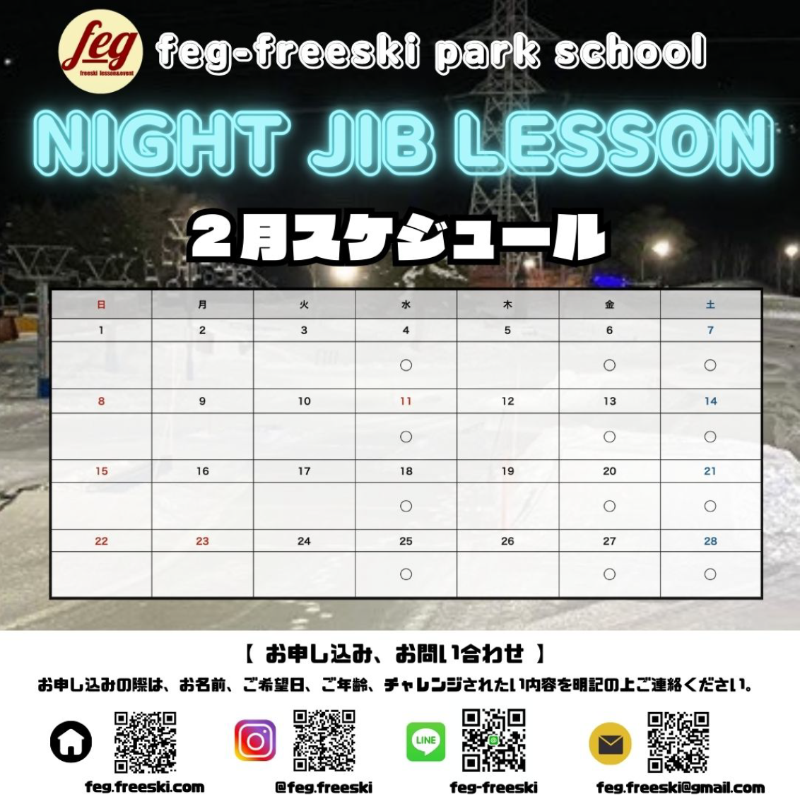 feg-freeski NIGHT JIB LESSON 2月レッスンスケジュール